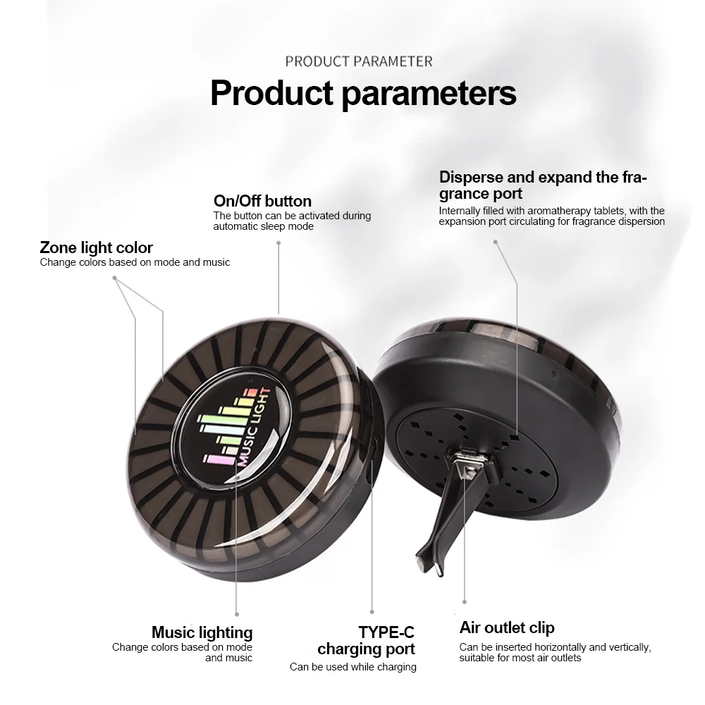 1. Аромат звукоснимателя ритма автомобиля Светодиодный лампа, цвет светильник будет изменен с музыкой или звуком и придет с ароматом.