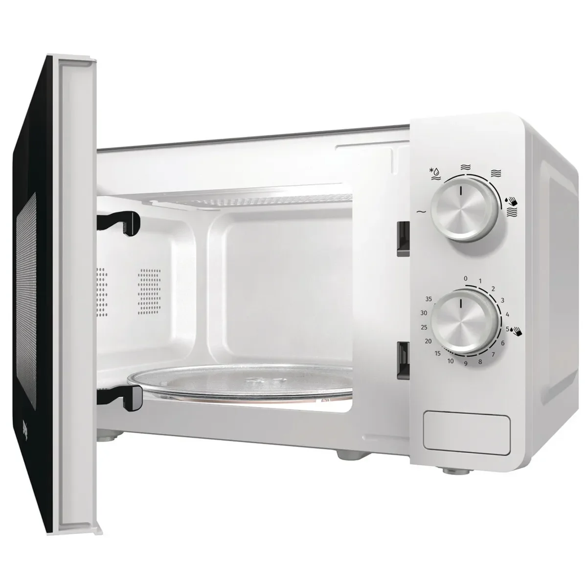Микроволновая печь GORENJE MO20E1W / MO20E1B – простое в использовании устройство для приготовления и разогрева пищи. Оно может стать подходящим решением для офиса или дома, если вам не требуются автоматические режимы работы и прочие «навороты». Эта модель выполнена в лаконичном нейтральном дизайне и удачно впишется в любой современный интерьер. Механическое управление удобно и надёжно. Верхний поворотный регулятор отвечает за выбор уровня мощности (всего пять вариантов), второй – за установку таймера (до 35 минут). По истечении заданного времени звучит сигнал. Есть функция «Размораживание», которая поможет быстро подготовить полуфабрикаты из морозилки к приготовлению. Внутренняя подсветка позволит контролировать процесс, не открывая дверцу. Поддерживать чистоту камеры печи совсем несложно: за это отвечает режим автоматической очистки AquaClean. В СВЧ помещается ёмкость с водой (около 200 мл), которая испаряется и размягчает загрязнения, включая присохшие частички пищи и брызги жира. Вам останется только протереть стенки сухой салфеткой.