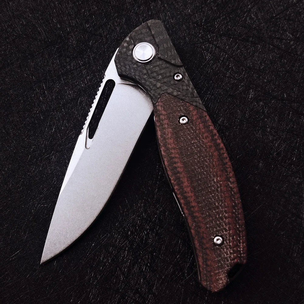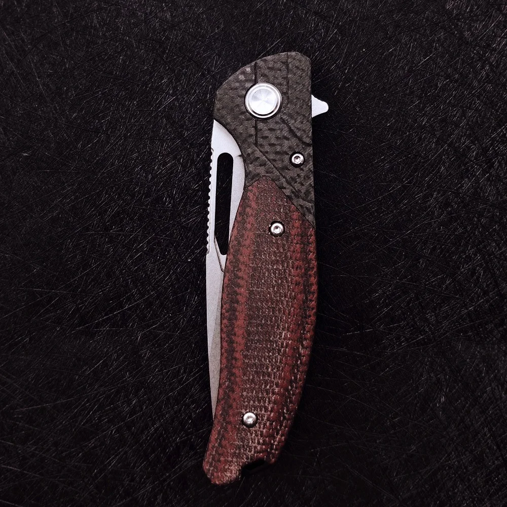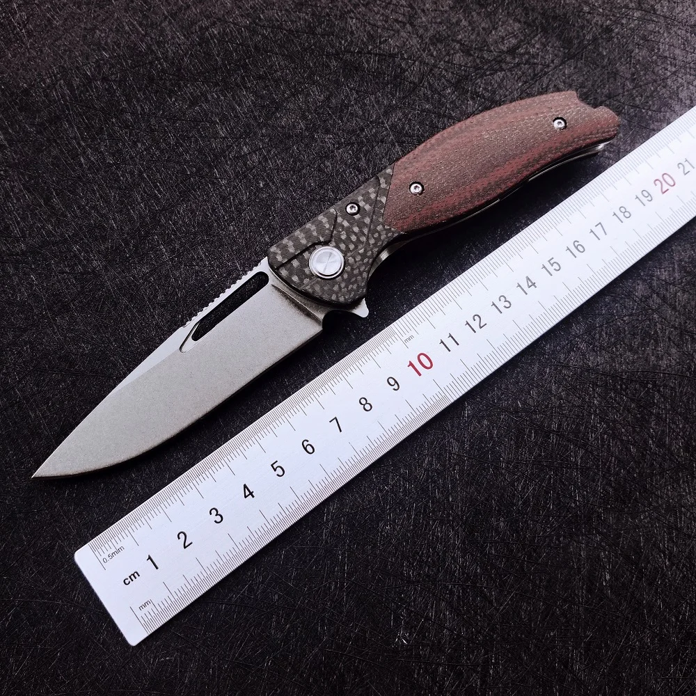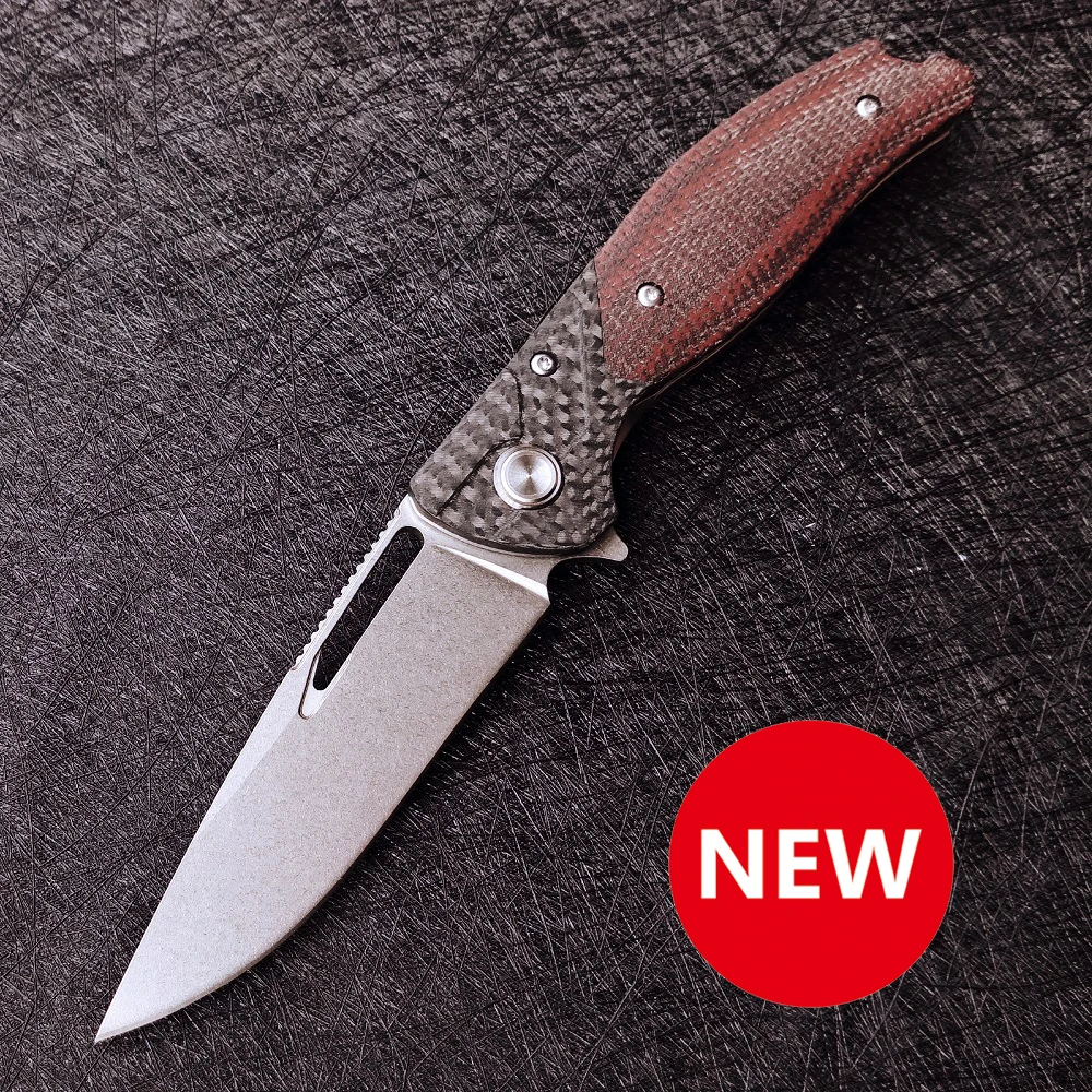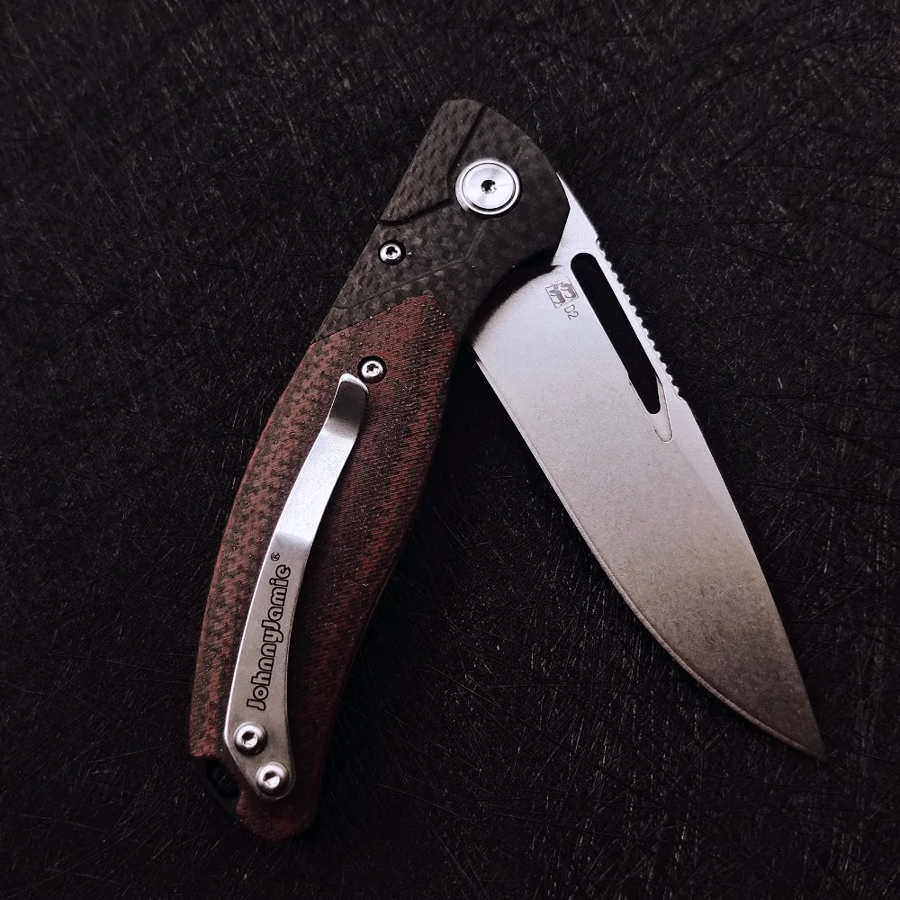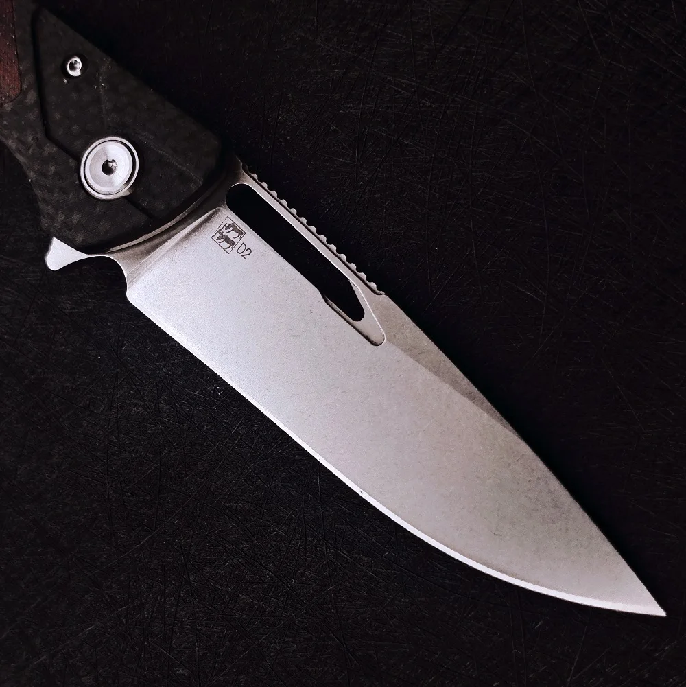 Складной нож JohnnyJamie CD F3b, Тактический Ручной инструмент из углеродного волокна и льна, для выживания, кемпинга, повседневного использования, D2